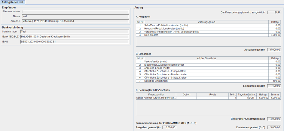 Hier befinden sich die finanziellen Angaben, auch hier besteht keine Möglichkeit der Bearbeitung.
