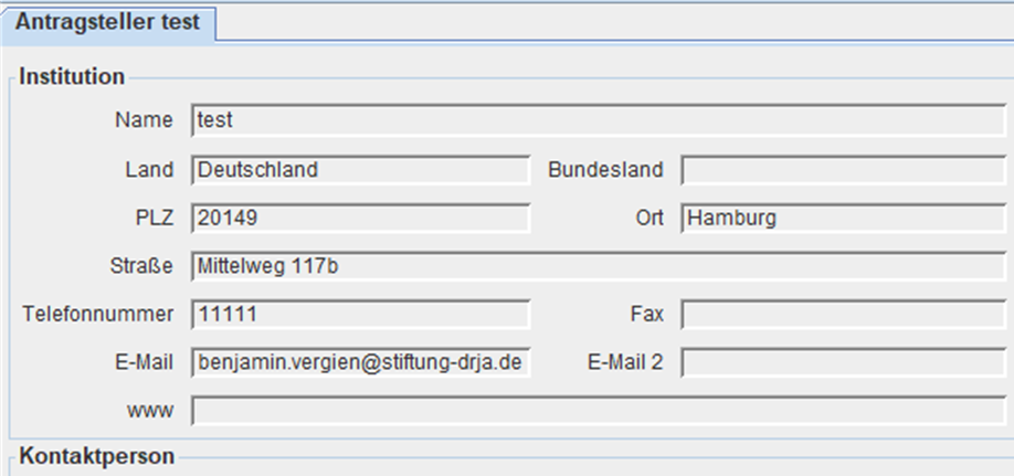 | 1  | <p>Antragstellende Person:<br>Kontaktdaten der verantwortlichen, beantragenden Person</p>                                                                                                                                                                                                                                                                                    |